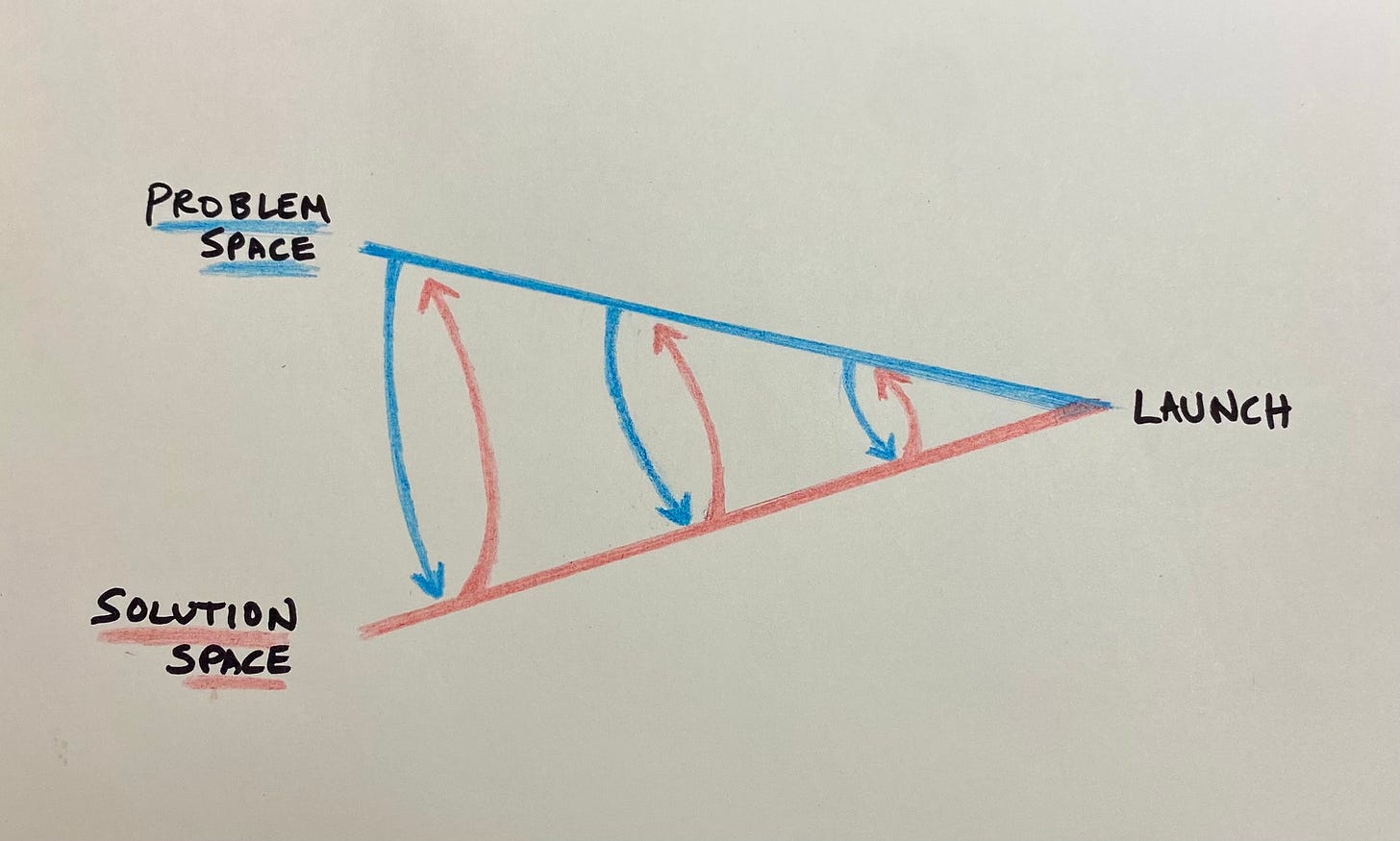 One issue is the current incentive structure for quick wins over long-term thinking that’s grounded in a thorough discovery process. However, I’ve experienced first-hand that you can have a technology-driven innovation team that is genuinely invested in understanding people problems early, in parallel with solution development. As I’ve taught existing design frameworks to my students, I’ve noticed that we lack a framework that accounts for how problem and solution space can coexist and symbiotically inform each other during emerging product development.