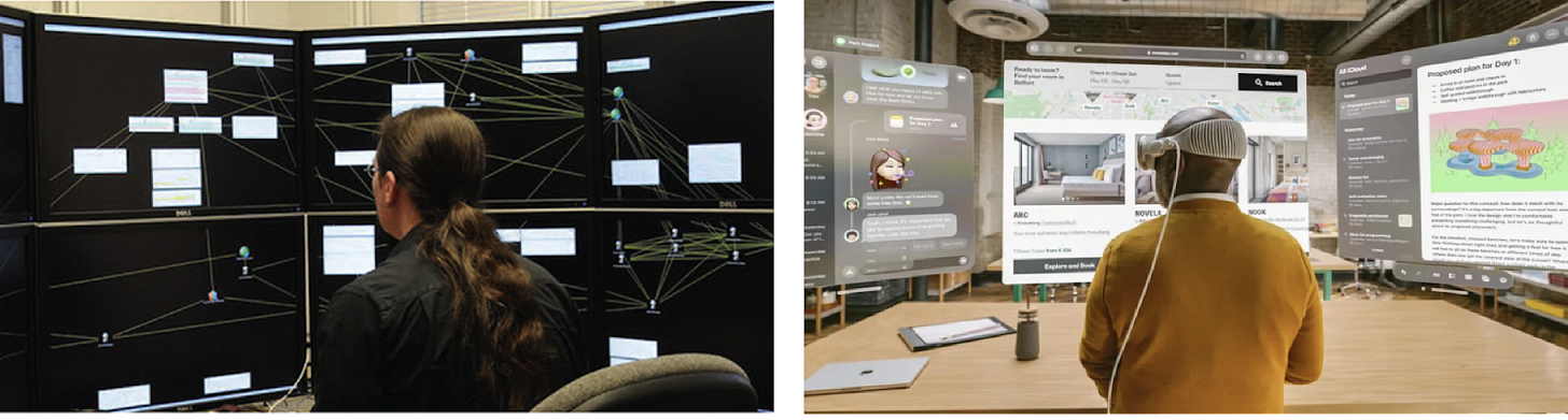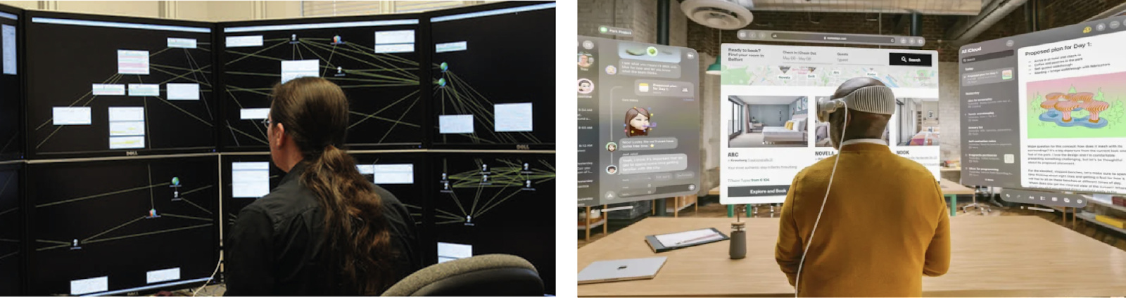 In a MR environment (e.g., Apple Vision Pro), “space to think” might look like extending your existing desktop to a spatial computing environment. I hypothesize that the same cognitive benefit we see in 2D would be enhanced in this high-resolution, embodied environment. I also posit that this helps explain consumer interest in using the Apple Vision Pro to spatially extend your screen space for enhanced productivity.