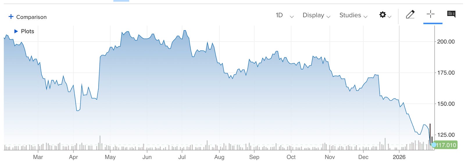 In particular, ServiceNow, a cloud software company that automates enterprise workflows, got significant attention for dropping 10% in a day. This happened even after they posted better-than-expected Q4 results. Zooming out, ServiceNow is down about 43% in a year.